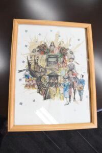 贈呈式には、宮崎神宮大祭事務局を代表して宮崎商工会議所の河野武弘様(元PTA会長)をはじめ、関係者の方々が出席。河野様は「素晴らしい作品で、ぜひ商工会議所として受け取りたい。今後もこうした芸術分野での活躍を期待しています」と荒武さんの作品を称賛されました。