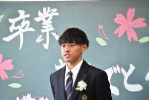 在校生代表送辞では尾上真白さん(英進2年)が、卒業生答辞では兼光優佳さん(総進3年)が、それぞれこれまでの思い出や感謝、そして未来への決意を述べ、会場は温かな拍手に包まれました。