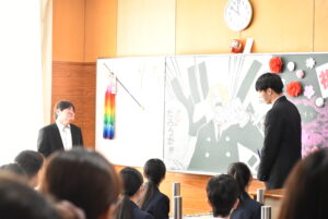 最後のホームルームでは、担任や保護者の方々から一人ひとりに卒業証書が手渡され、これまで支えてくださった方々への感謝の思いが伝えられました。