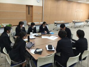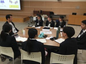 社会人交流会では様々な経歴を持った6名の方に、15分ずつ全6グループを回ってお話をいただき、生徒たちは社会人の方から貴重な経験をシェアしていただきました。