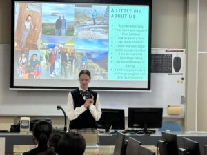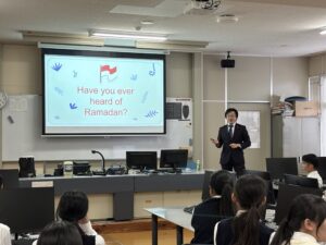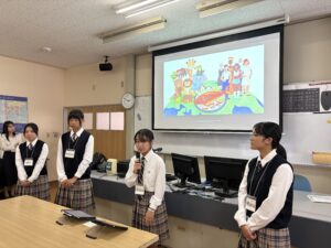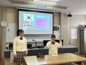 生徒たちは1か月前から3~4名のグループに分かれ、Intercultural Understanding(異文化理解)というテーマのもと、リサーチ・英文原稿作成・スライド作成に取り組みました。7つのエリア(北米・南米・アフリカ・中東・アジア・ヨーロッパ・オセアニア)から抽選で決めた地域を各グループが担当しました。