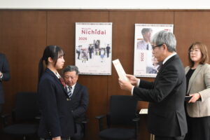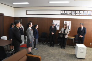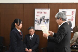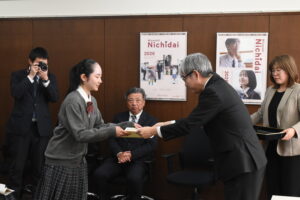 12月4日(木)、「税についての作文」の入賞者表彰式及び副賞授与式が校長室で行われました。宮崎税務副署長が来校され、受賞者に賞状と副賞が手渡されました。おめでとうございます!